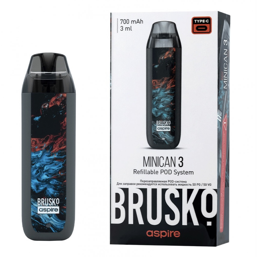 Перезаправляемая Под-Система Бруско Миникан 3 (Brusko Minican 3) 700 mah, Серый Флюид - купить в Кумертау