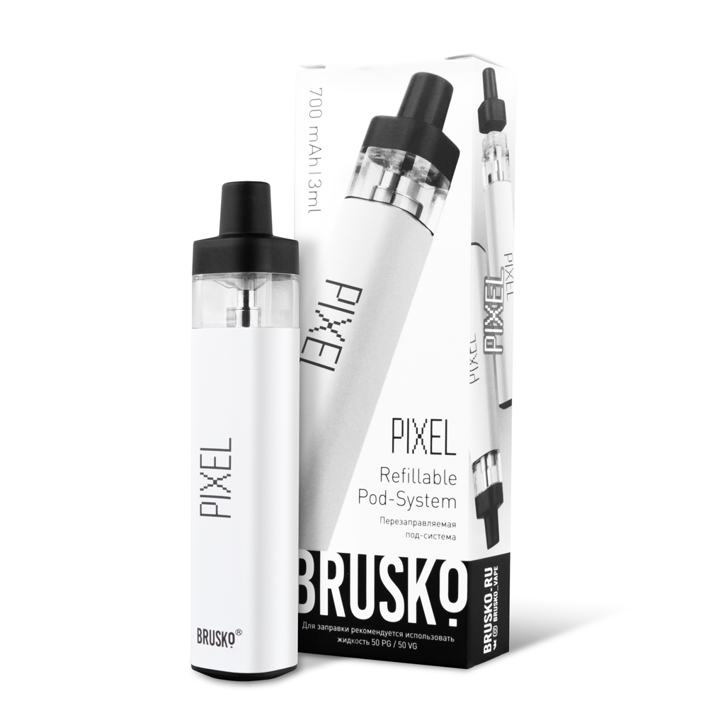 Перезаправляемая Под-Система Бруско Пиксель (Brusko Pixel) 700 mah, Белый - купить в Кумертау